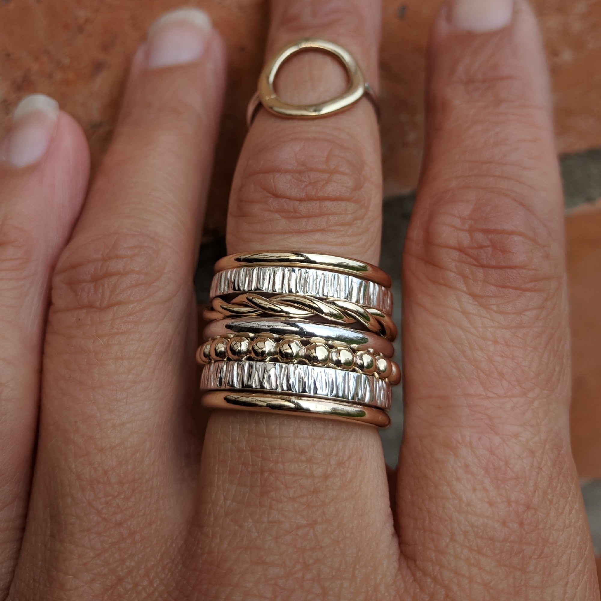 These beaded band stacking rings are such a fun ring and a great way to add some texture to your stack. Or are a fun ring to wear on their own! They are chunky and delicious!