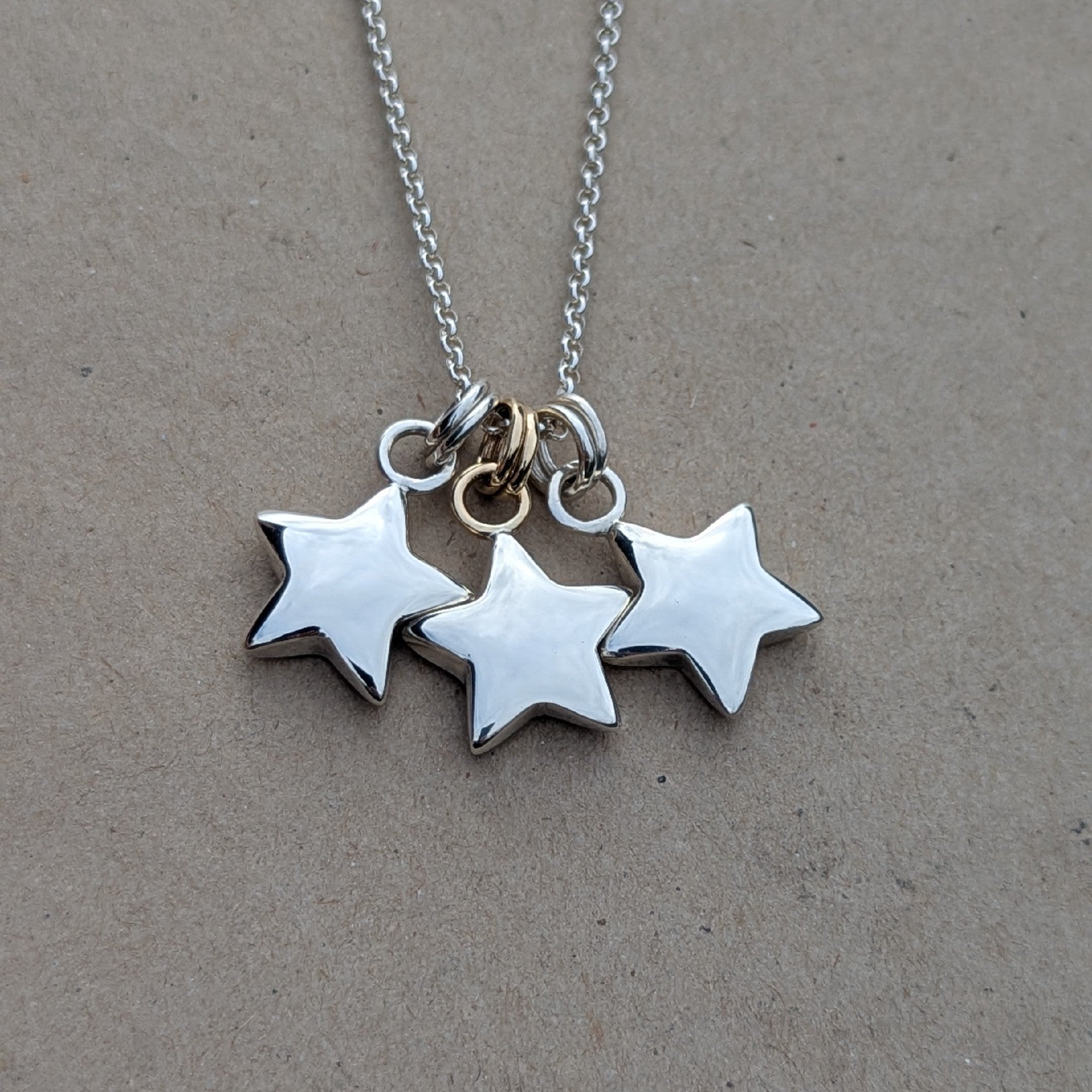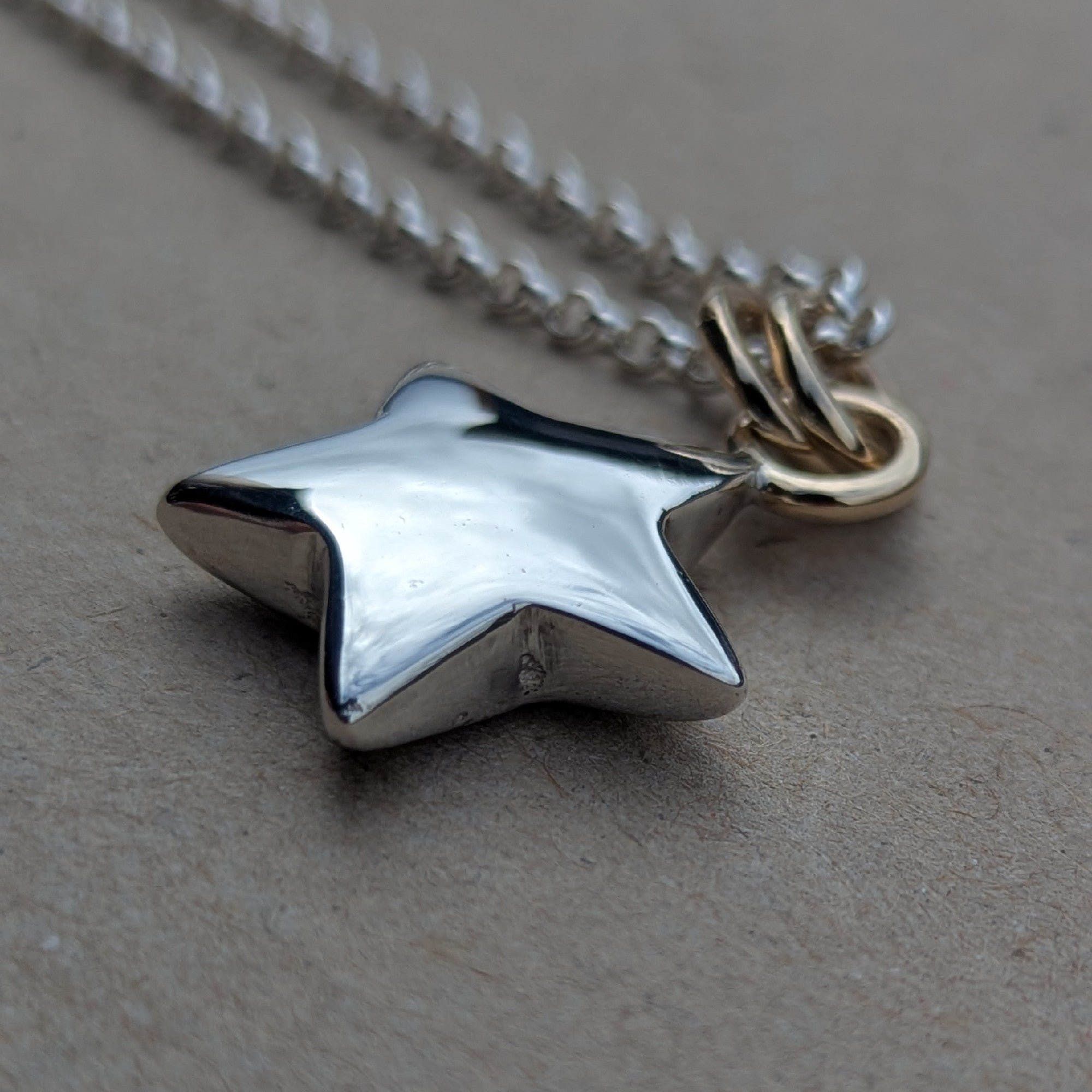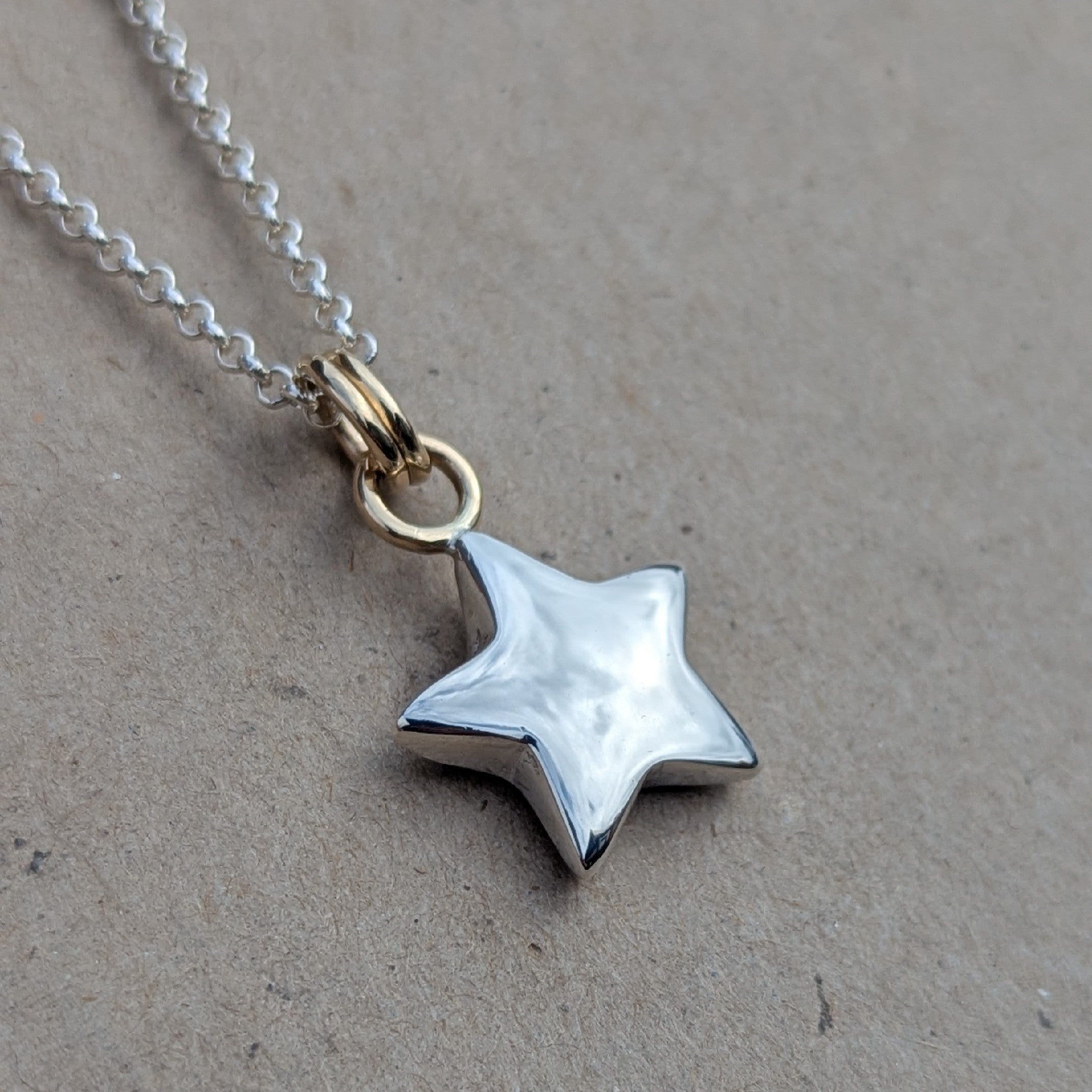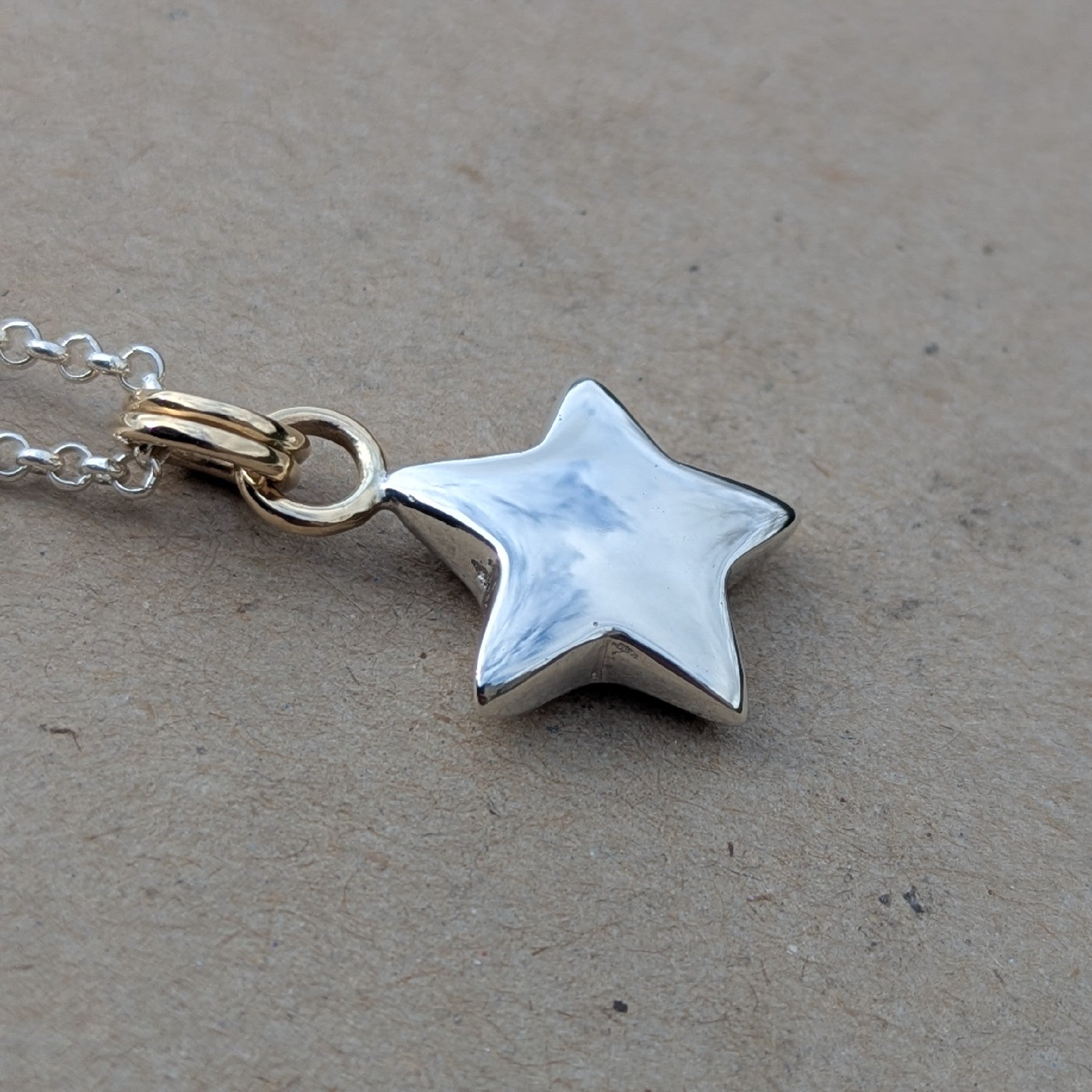Sterling silver sand cast star pendant with 9ct solid yellow gold rings